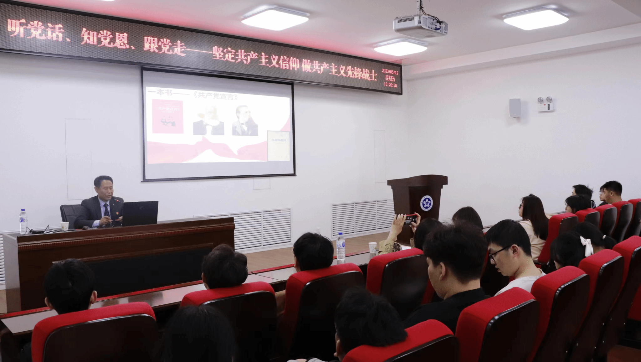 5月12日下午,由学校“夕阳红”教育宣讲团退休老教授叶万军主讲的《听党话 知党恩 跟党走——坚定共产主义信仰 做共产主义先锋战士 》报告会,在办公楼学术报告厅412举行。新闻与传播学院百余名新生代表聆听了报告,报告会由关工委秘书长刘晓敏主持。